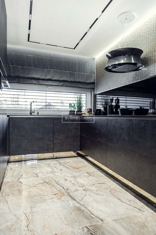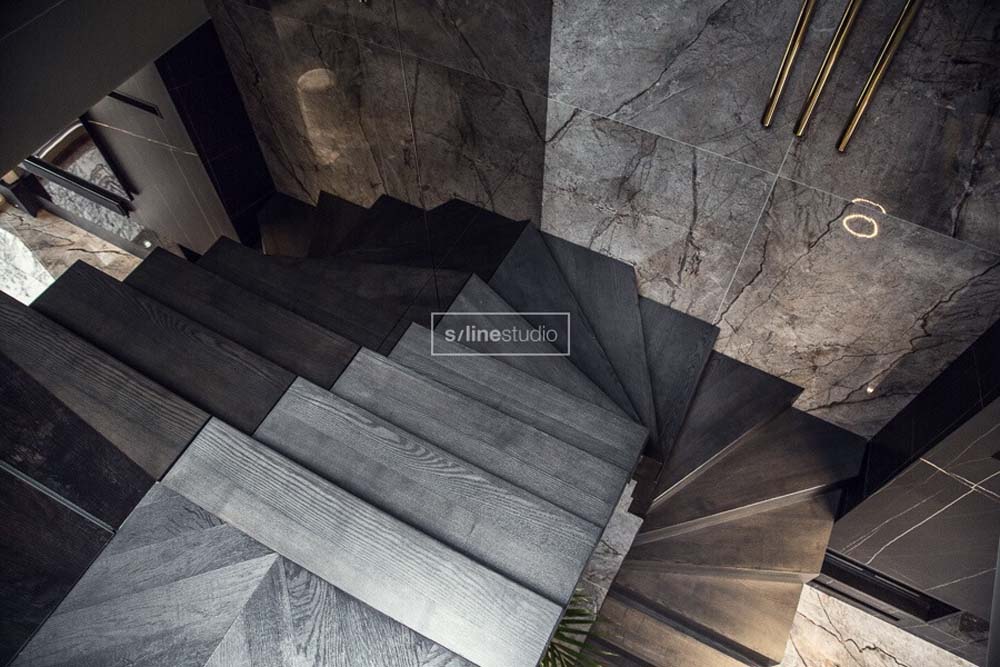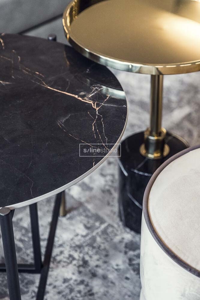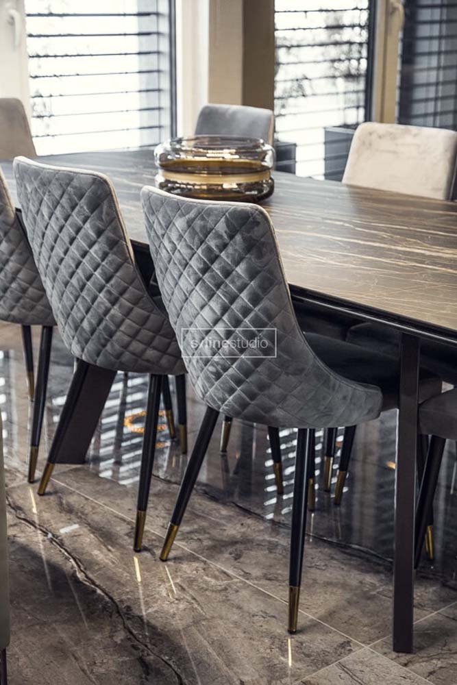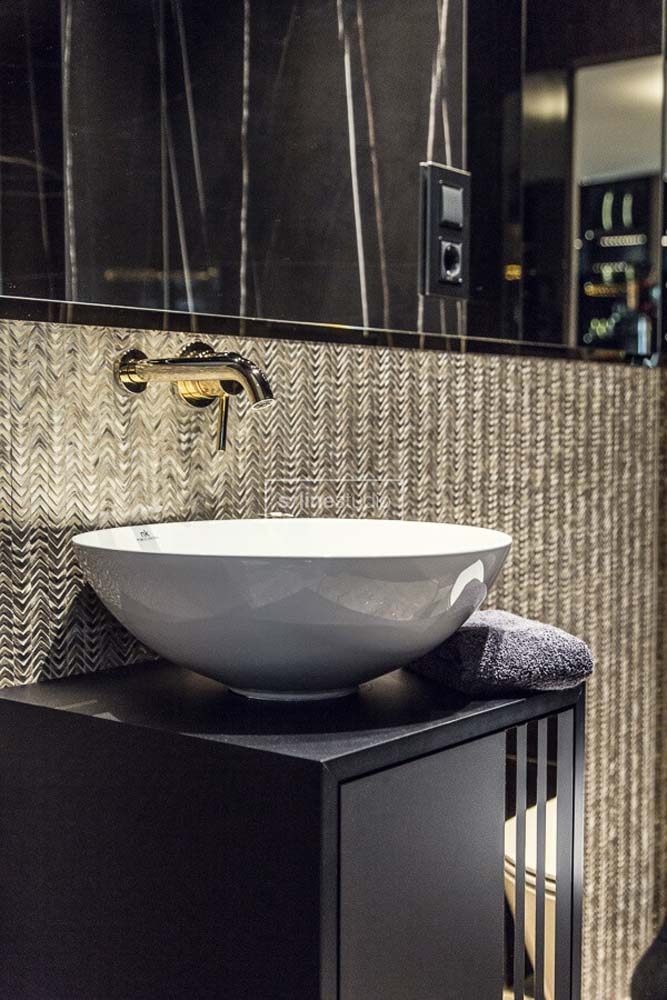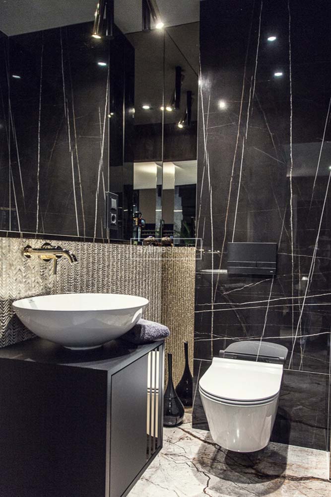 Zaczęliśmy więc remont od wyburzeń… betonowe schody zostały usunięte gdyż zajmowały sporo przestrzeni, a za toaletą dla gości powstała pralnia. Znając ich preferencje zastosowaliśmy ciemną kolorystykę, oraz ukryte drzwi w całym domu. Złote wykończenia dodają elegancji, które podkreślają charakter wnętrza. Tatiana od samego początku wspominała, że lubi złoty kolor i chce mieć go domu. Tym systemem spełniliśmy oczekiwania właścicielki i przy okazji zagwarantowaliśmy sobie podziw gości, którzy byli pod wrażeniem tak oryginalnych rozwiązań.