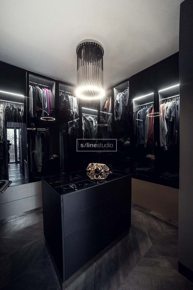Cóż to była za współpraca. Zrobiliśmy ten projekt wiedząc od początku, że trzeba będzie zacząć od zaprojektowania na nowo układu pomieszczeń. Układ deweloperski nie przewidział pomieszczenia w którym znalazłaby się garderoba. Rzadko kiedy gotowe budynki przewidują takie rozwiązania.